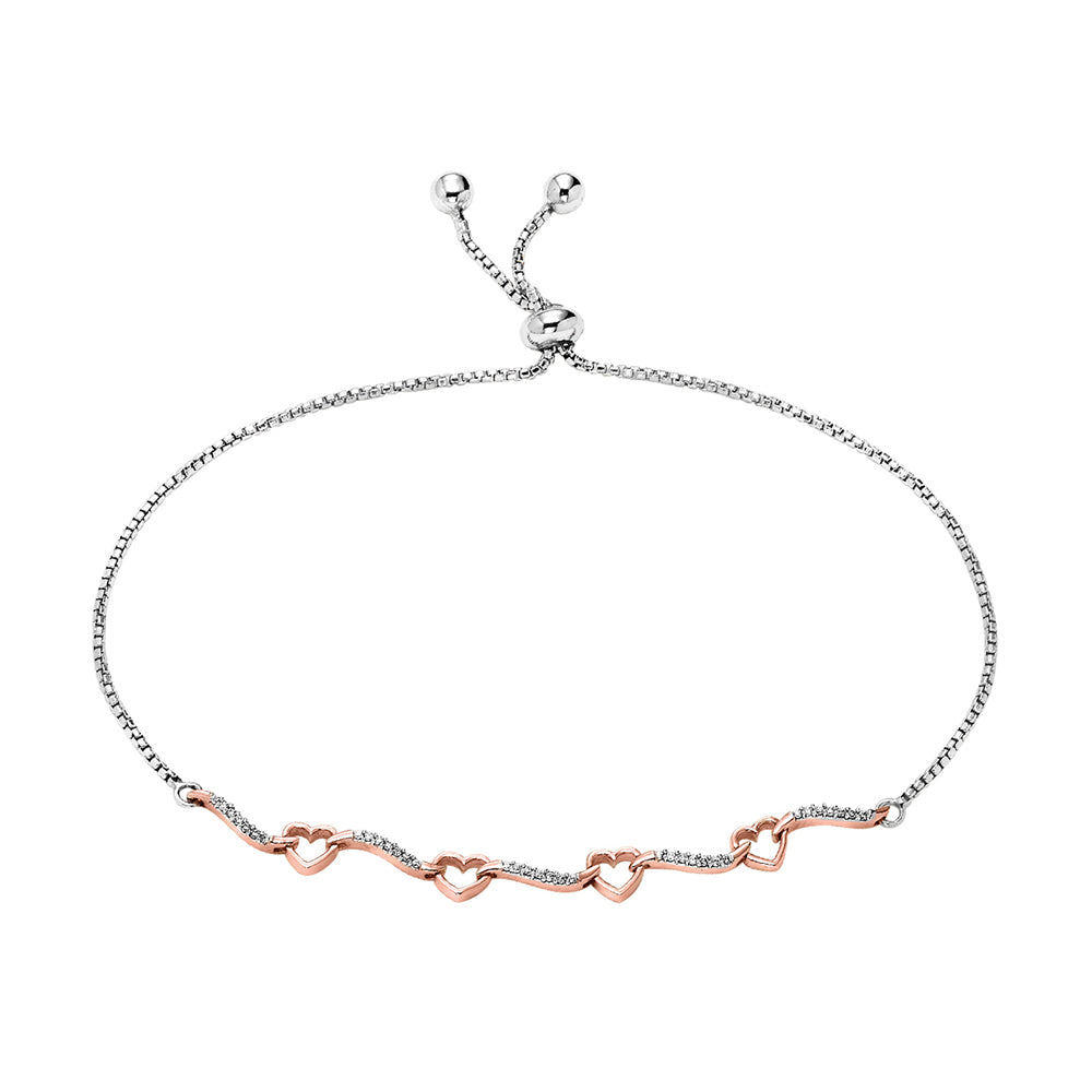 Silver White Rose Diamond 1/7Ctw Bracelet