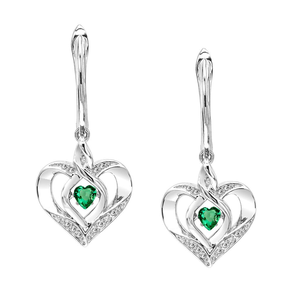 Silver Diamond 1/50Ctw & Created-Emerald 1/8Ctw Earring
