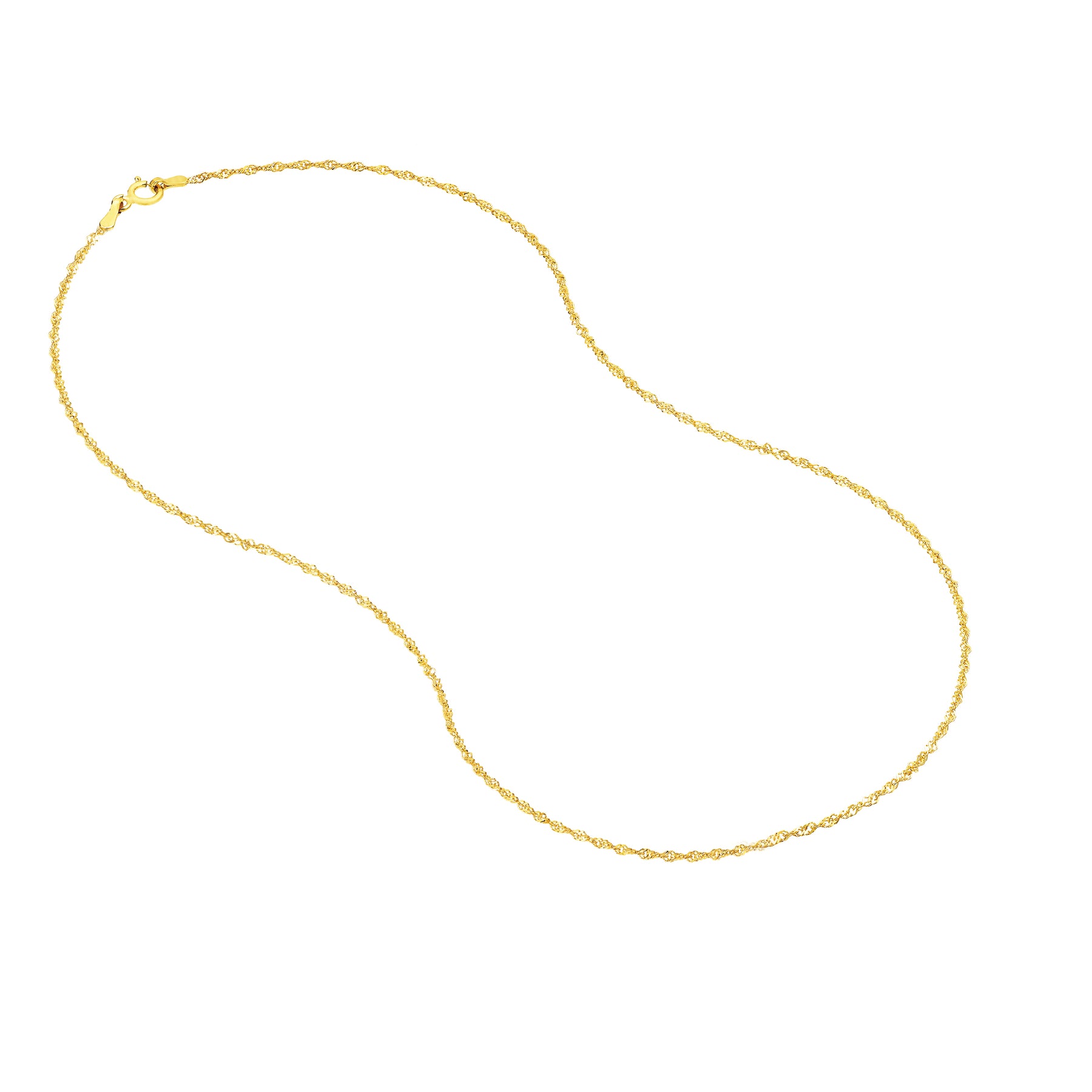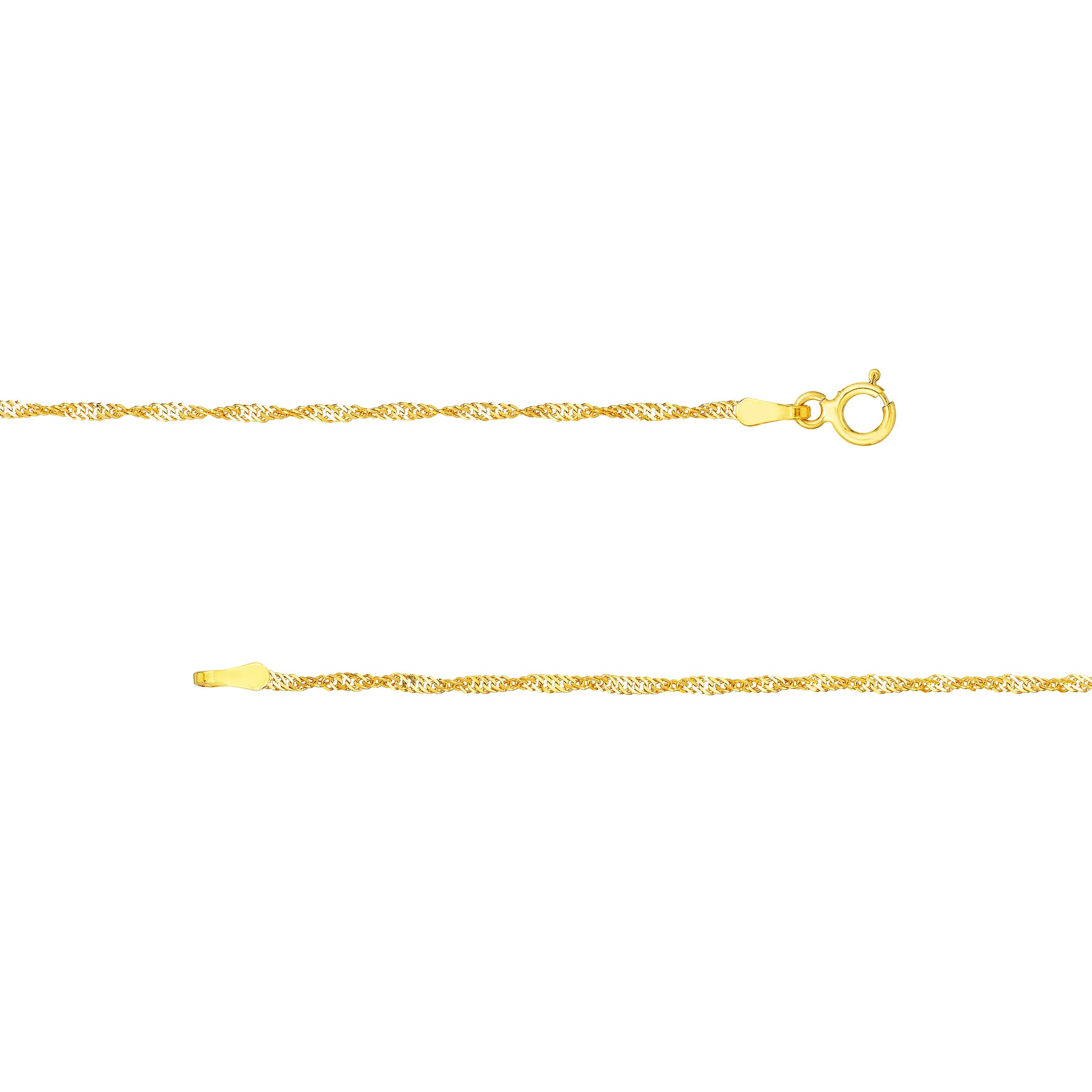 Add elegance to every look with this Singapore Chain. The lightweight chain has twist elements that perfectly reflect light.