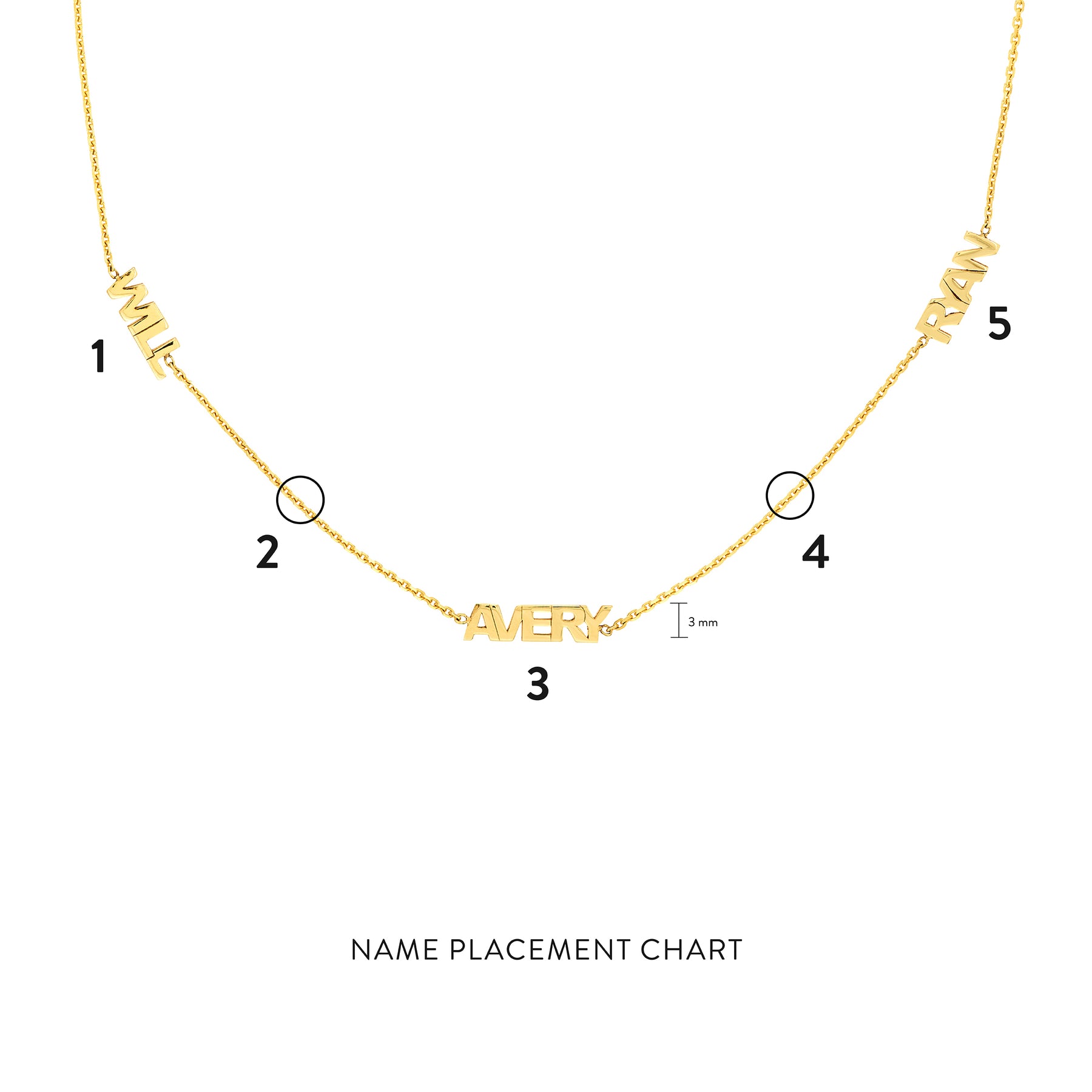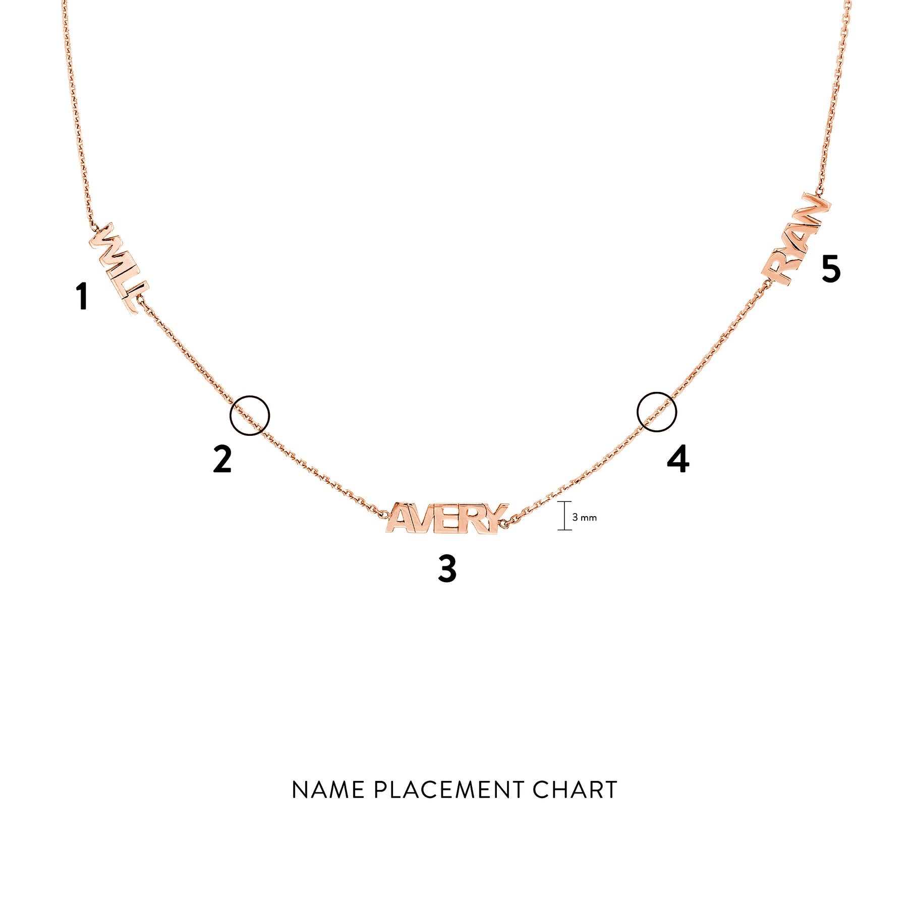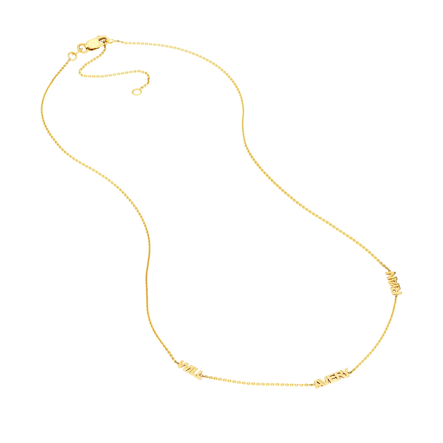Make it personal with this custom station necklace. The 3mm block font names sit on a 2 inch adjustable chain.