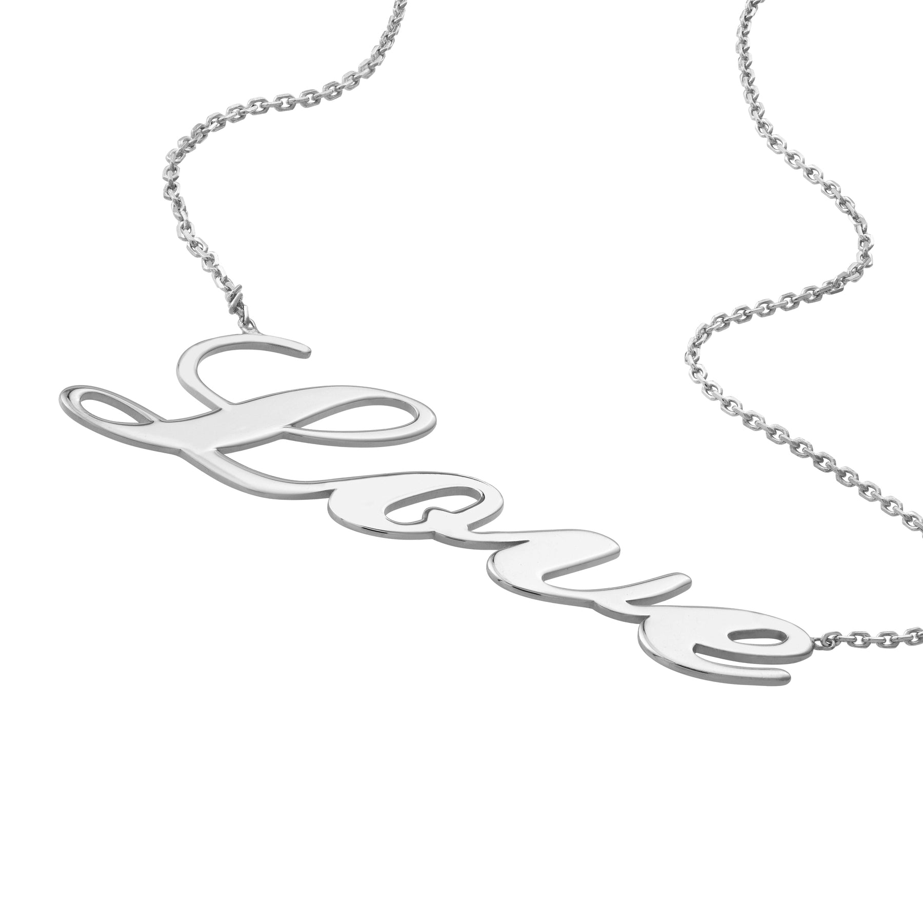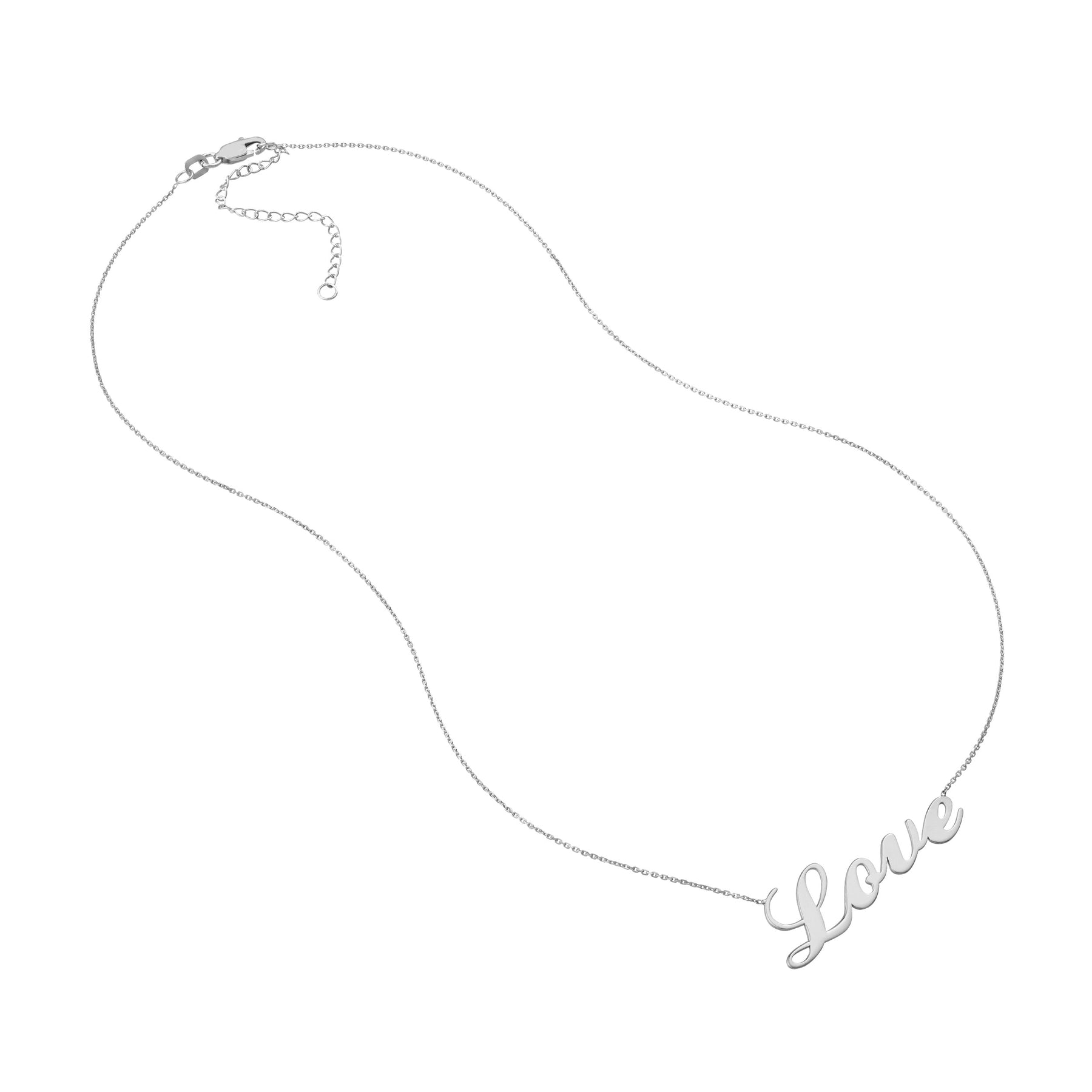 You can still choose your favorite statement while remaining budget-friendly. This necklace states 'love' in script, and is crafted in Sterling Silver. Plated in rhodium, yellow gold or rose gold.