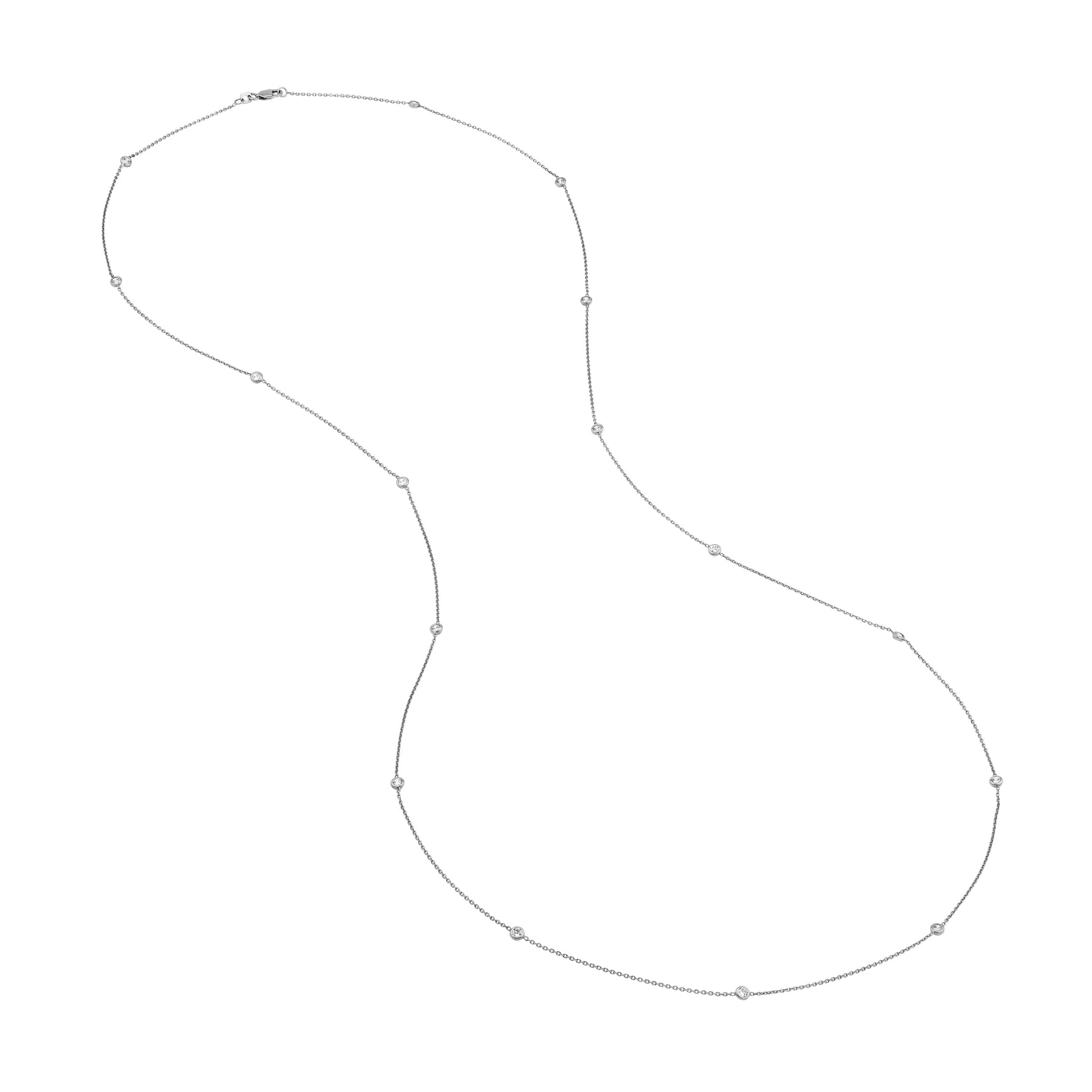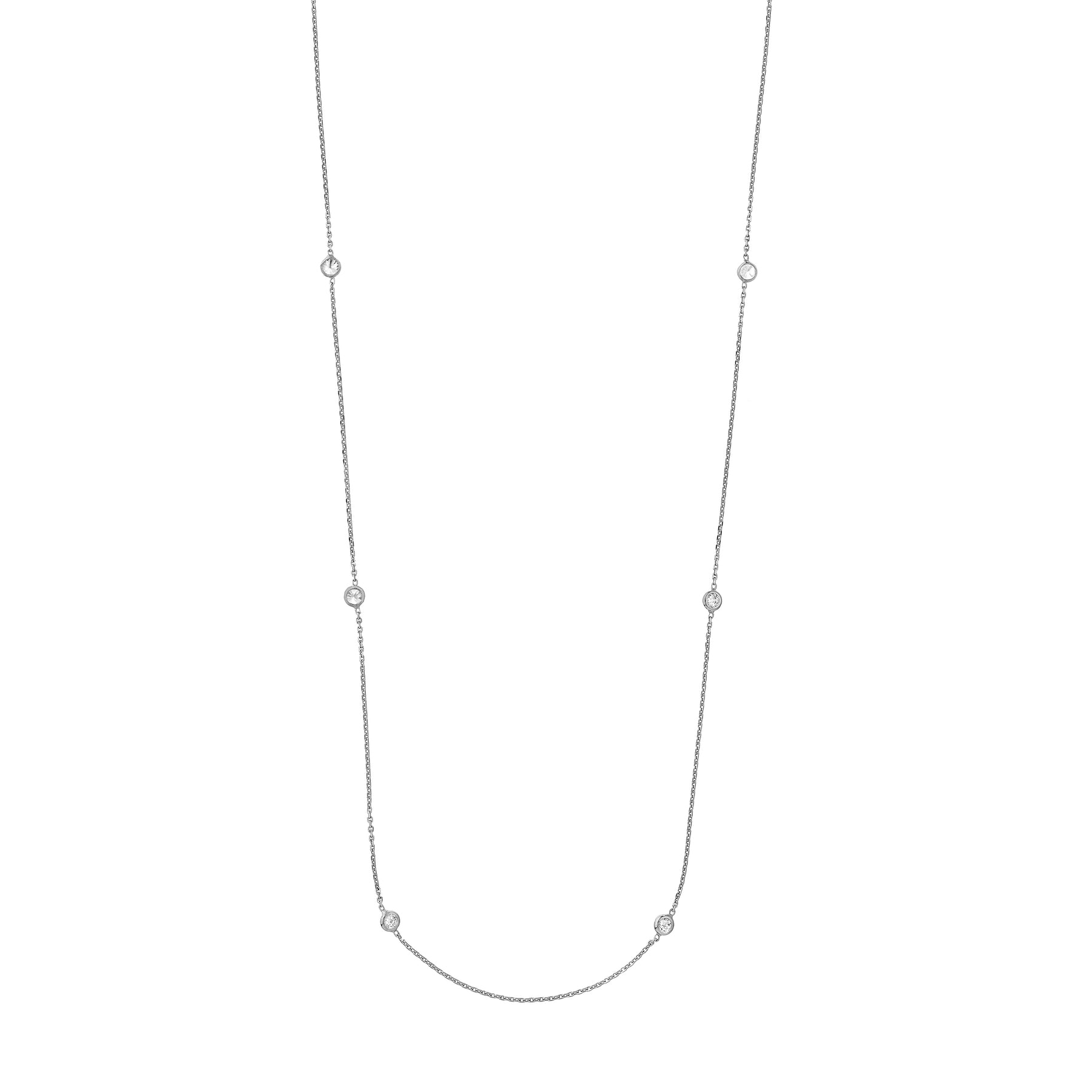 Channel regal elegance with this 36-inch-long necklace. The classic necklace has CZ bezel stations. Crafted in sterling silver. Plated in rhodium, yellow gold or rose gold.