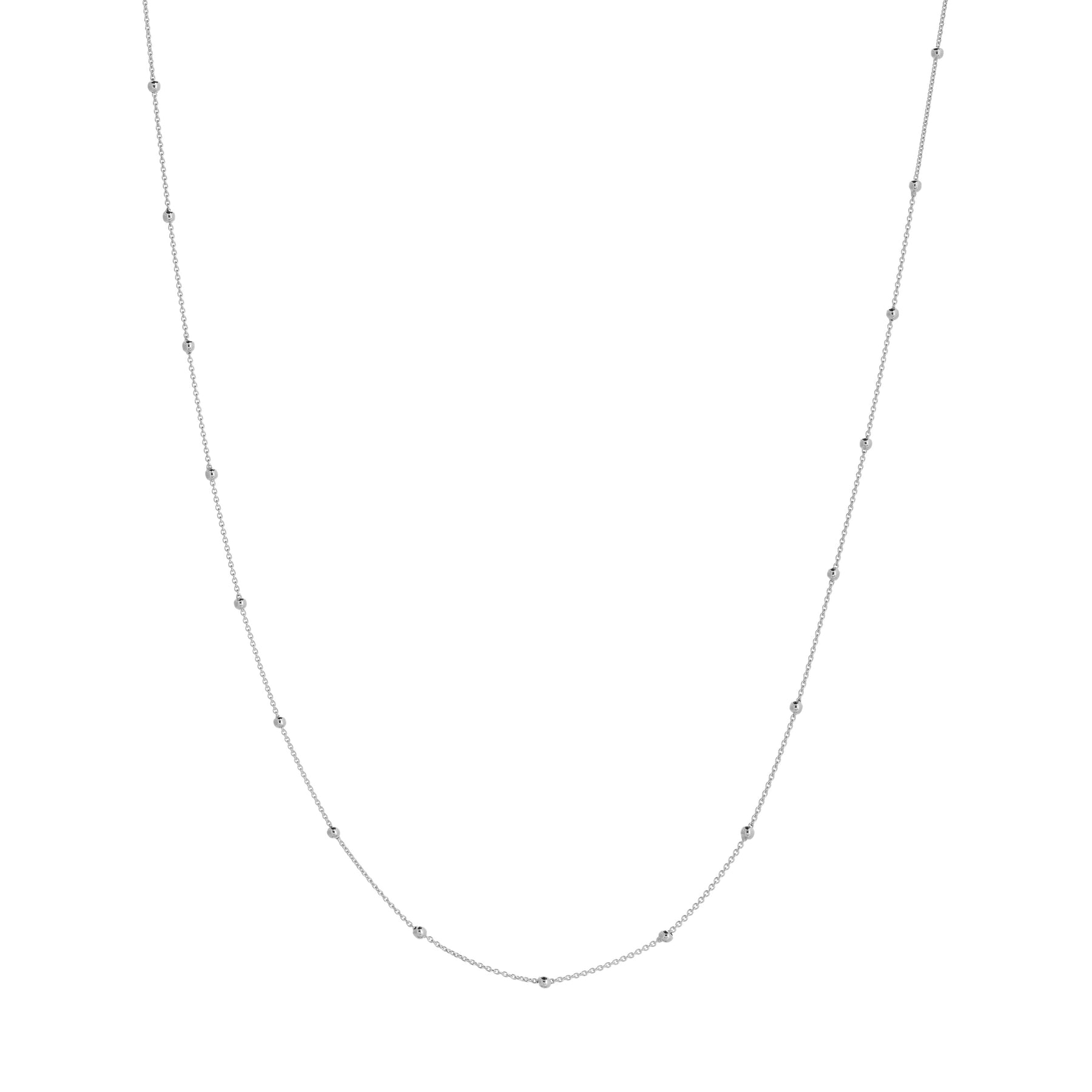 This contemporary necklace can perfectly be worn alone or with layers. The 14K gold necklace has 2mm bead stations on an adjustable chain.