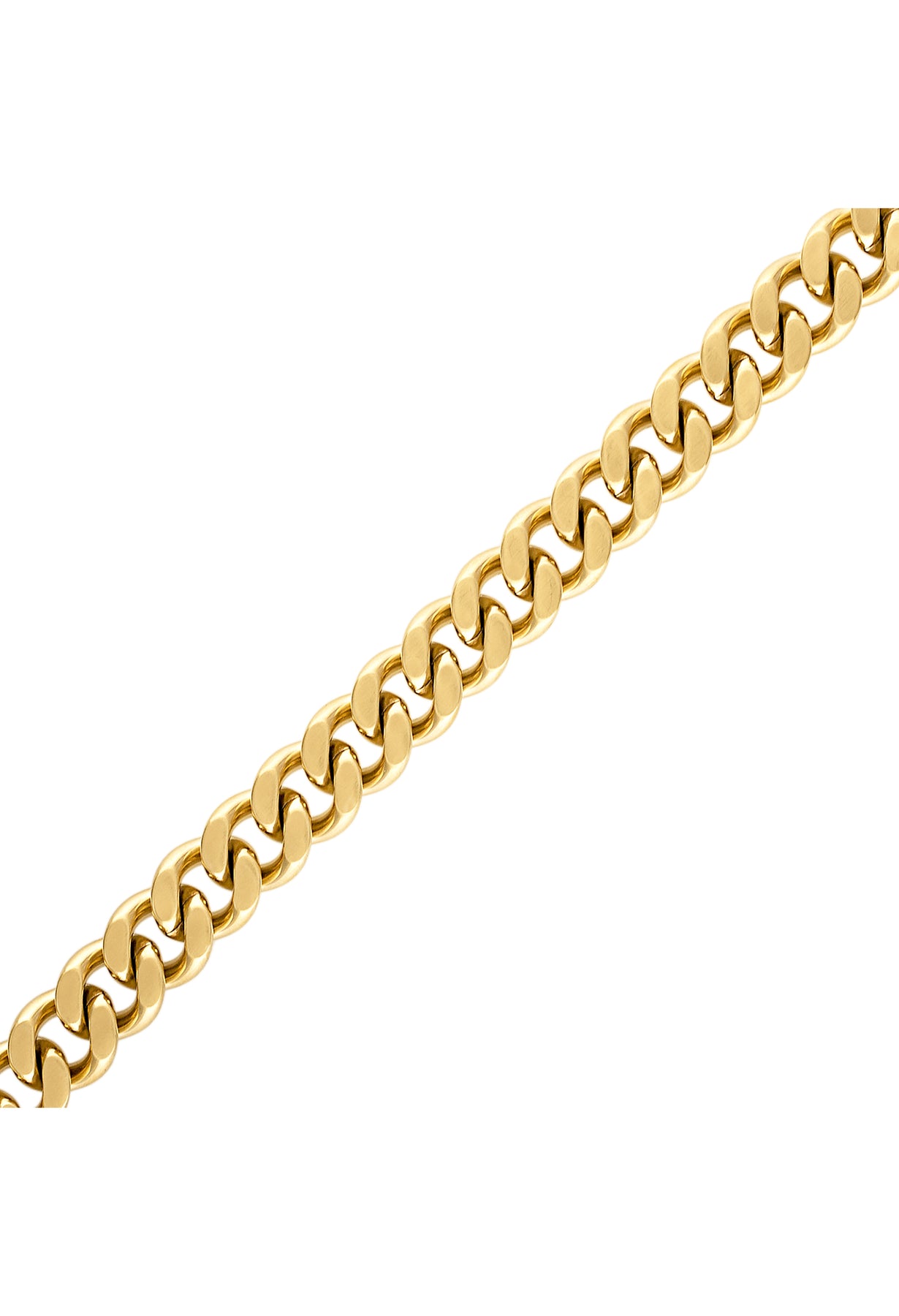 A classic Bulova curb chain of dual-surfaced links updated in a striking black and gold color combination. Distinctly bold 24"" necklace made of 10MM gold-tone stainless steel combines both polished and brushed finishes. In an eye-catching black color, the custom-designed clasp with tongue in the shape of the Bulova signature tuning fork is subtly branded with our iconic logo.