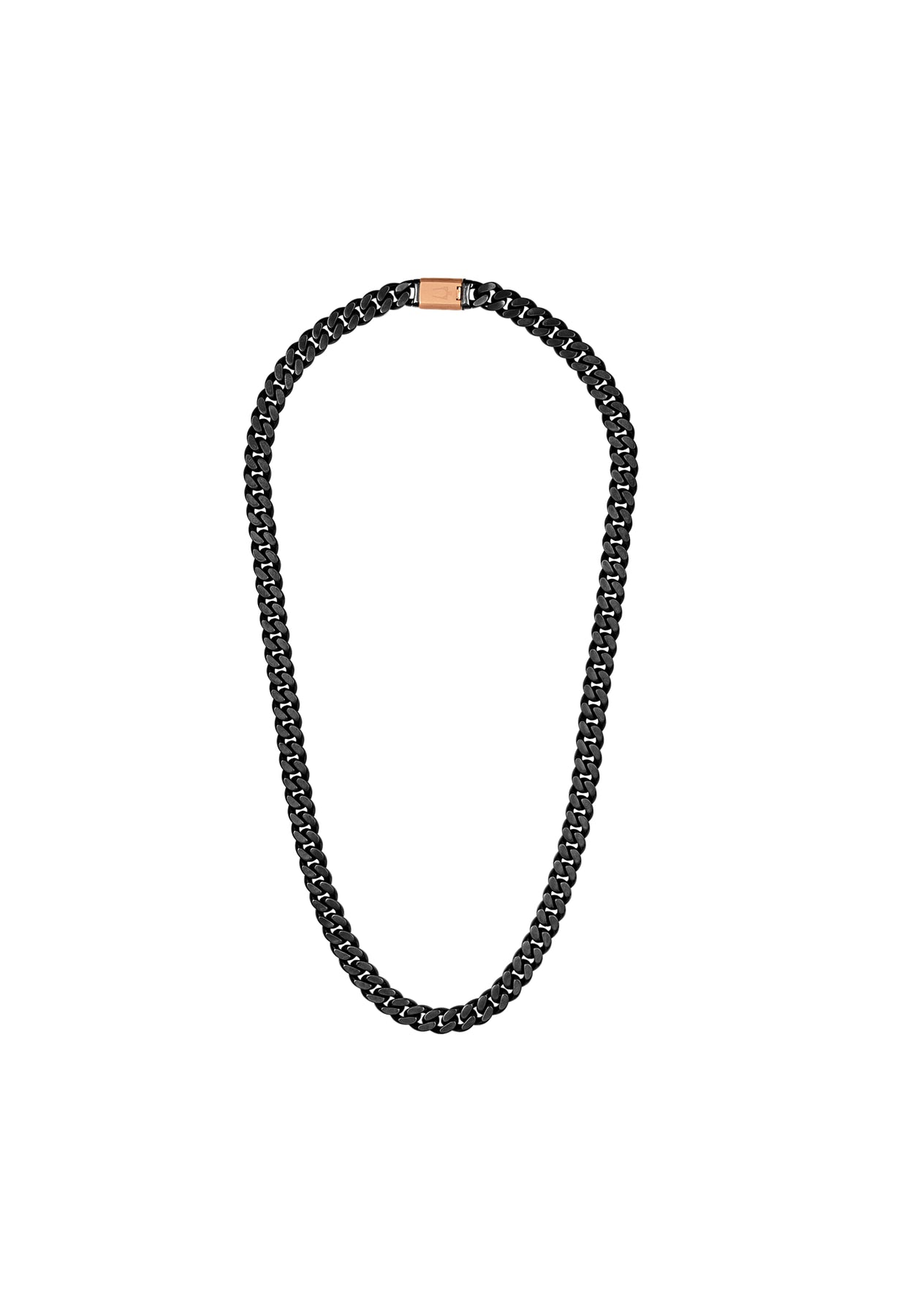 A classic Bulova curb chain of dual-surfaced links newly featured in a striking gunmetal and rose color combination. A distinctly bold 24"" necklace made of 10MM gunmetal-colored stainless steel combines both polished and brushed finishes. Rose-tone, custom-designed clasp with tongue in the shape of the Bulova signature tuning fork is subtly branded with the Latin GRAMMY® logo.