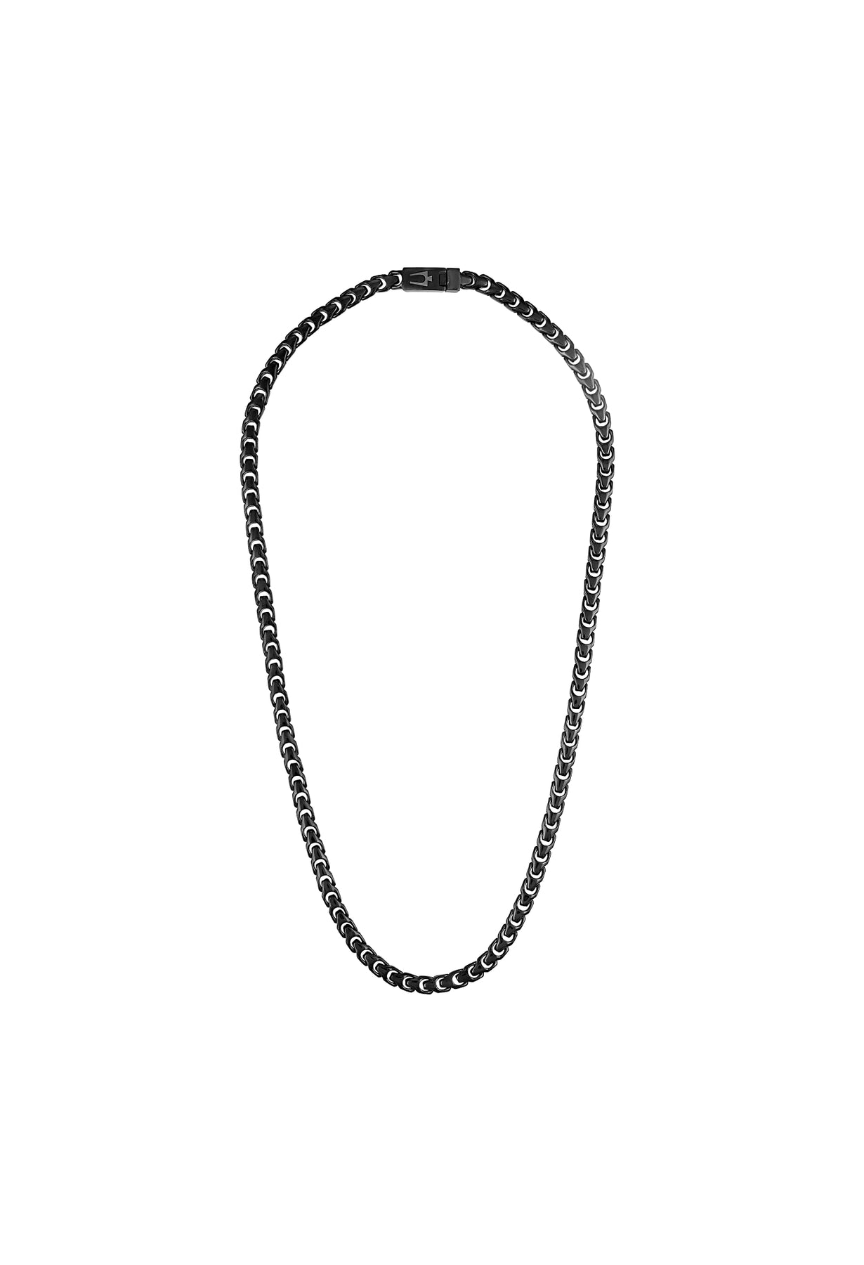 The fresh new Bulova Link™ Collection abounds in both personality and presence as our iconic tuning fork makes its debut as a signature design element. Destined to become a classic, this 6MM black-tone stainless steel necklace in a sleek polished finish makes a bold statement. Measures 22"" in length and features a box lock clasp etched with Bulova's iconic logo.