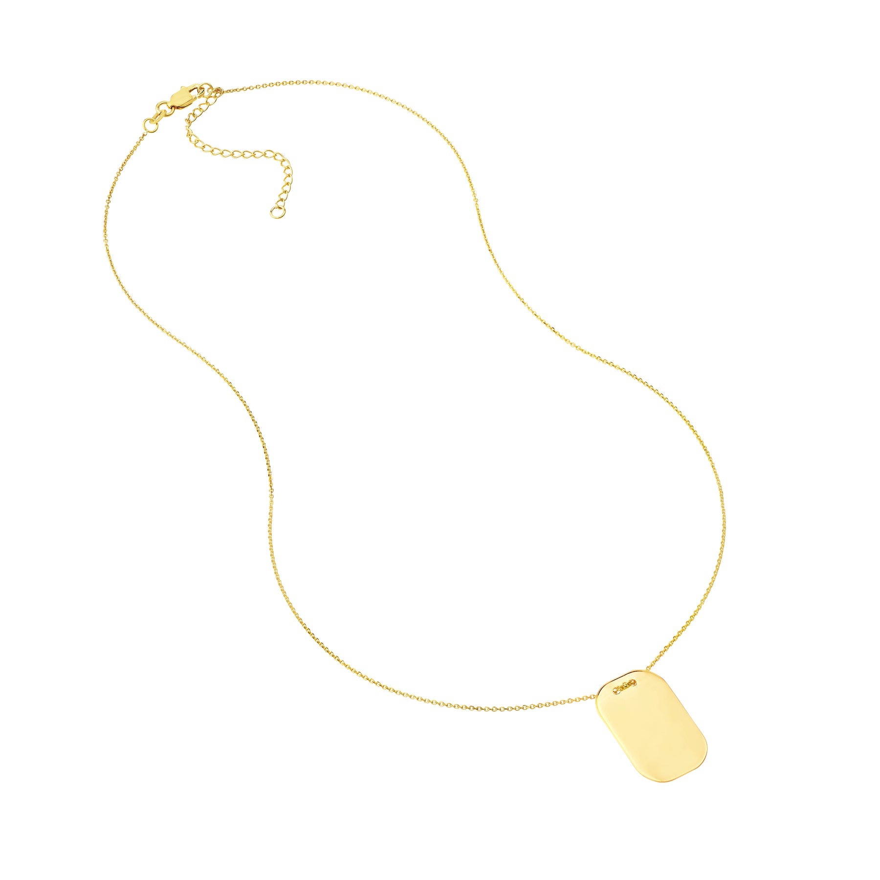 A name plate necklace makes the perfect canvas for customization. Make this 14K gold engravable dog tag necklace unique with your name.