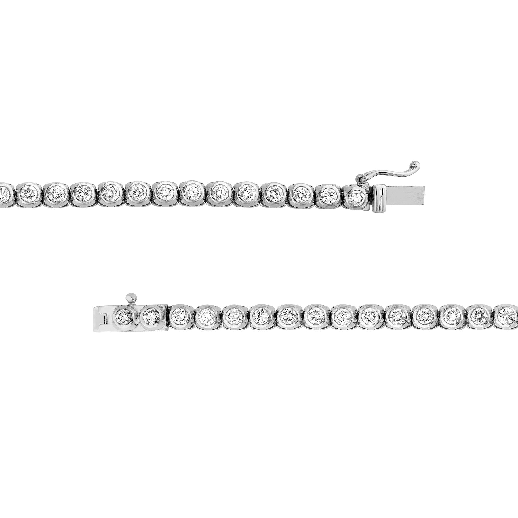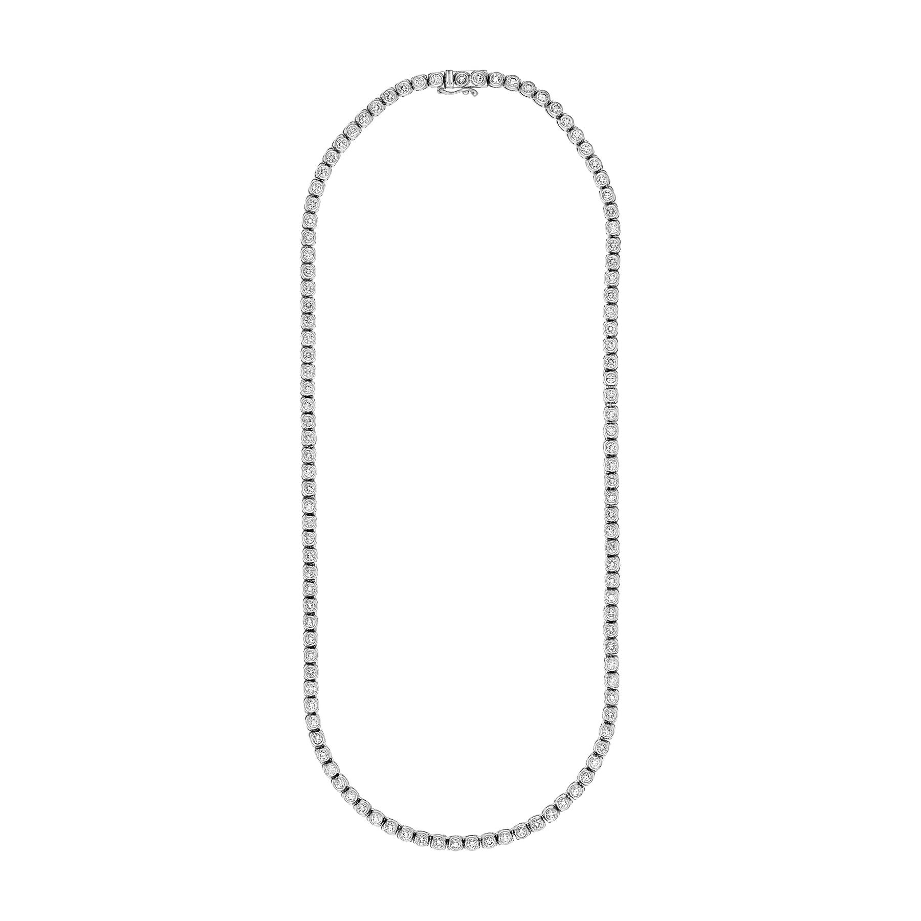 A classic tennis necklace featuring bezel set diamonds—an elegant addition to any collection. This 2.5mm necklace secures with a box lock for a sleek, secure fit.