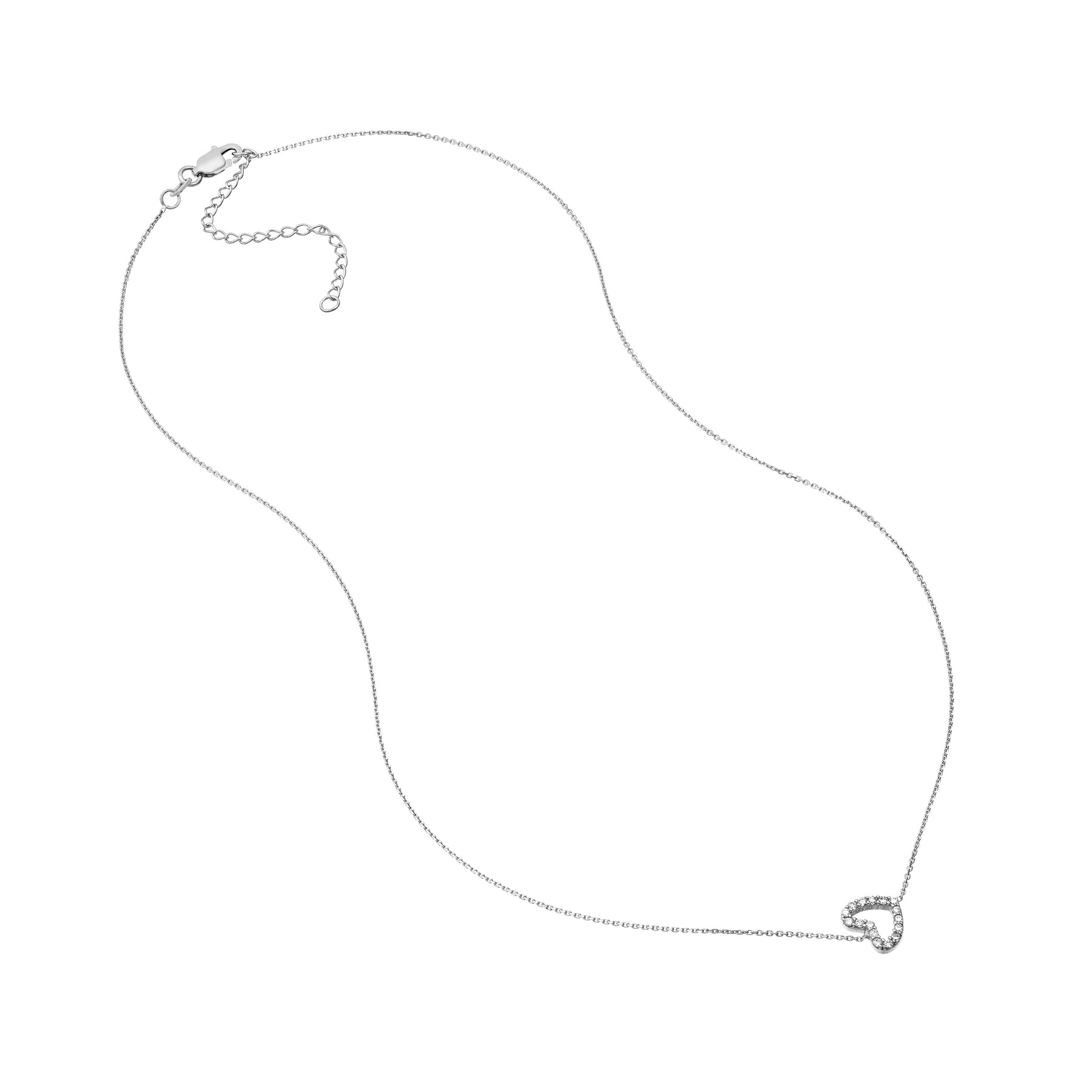 Always hold love close to your heart. This sideways mini CZ open heart necklace hangs on an adjustable chain. Crafted in Sterling Silver. Plated in rhodium, yellow gold or rose gold.