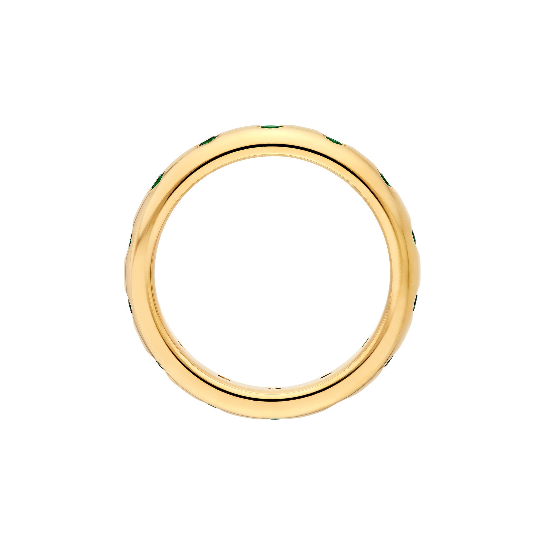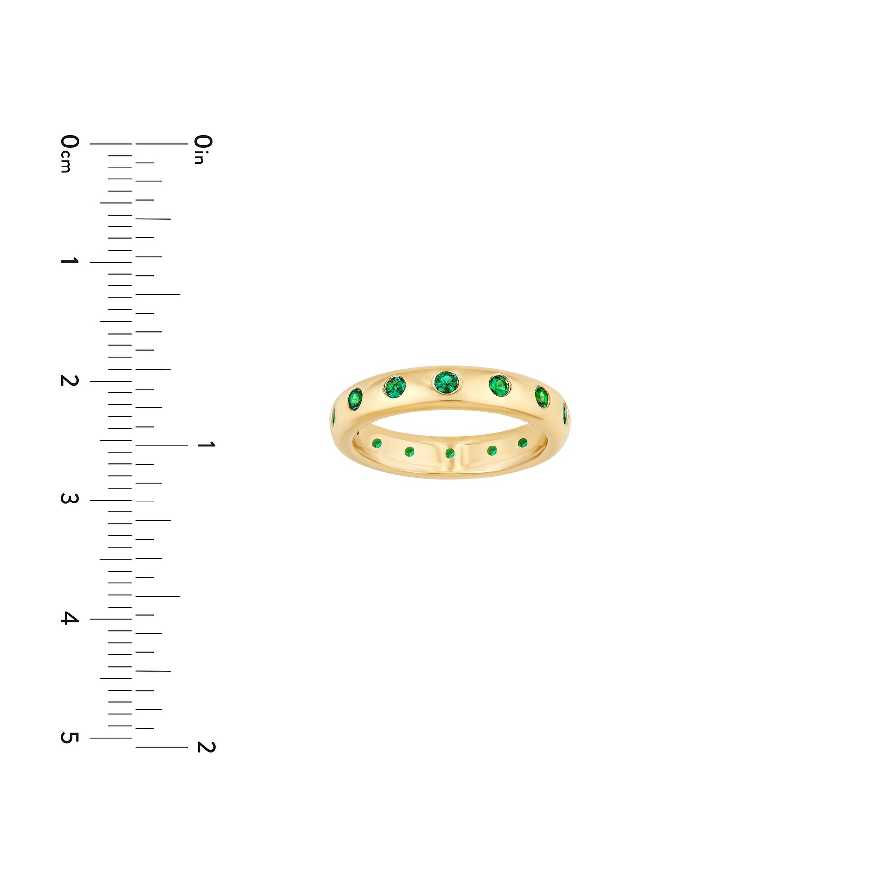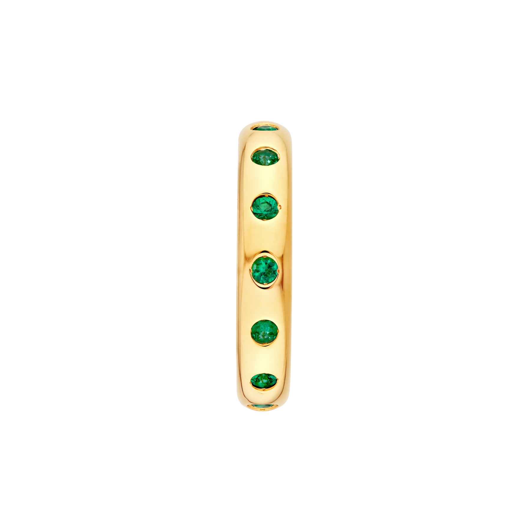 Symbolizing rebirth, harmony, and the vibrant May birthstone, this elegant band features 3/8tcw of 2mm Emeralds delicately scattered throughout a 14K gold setting.
